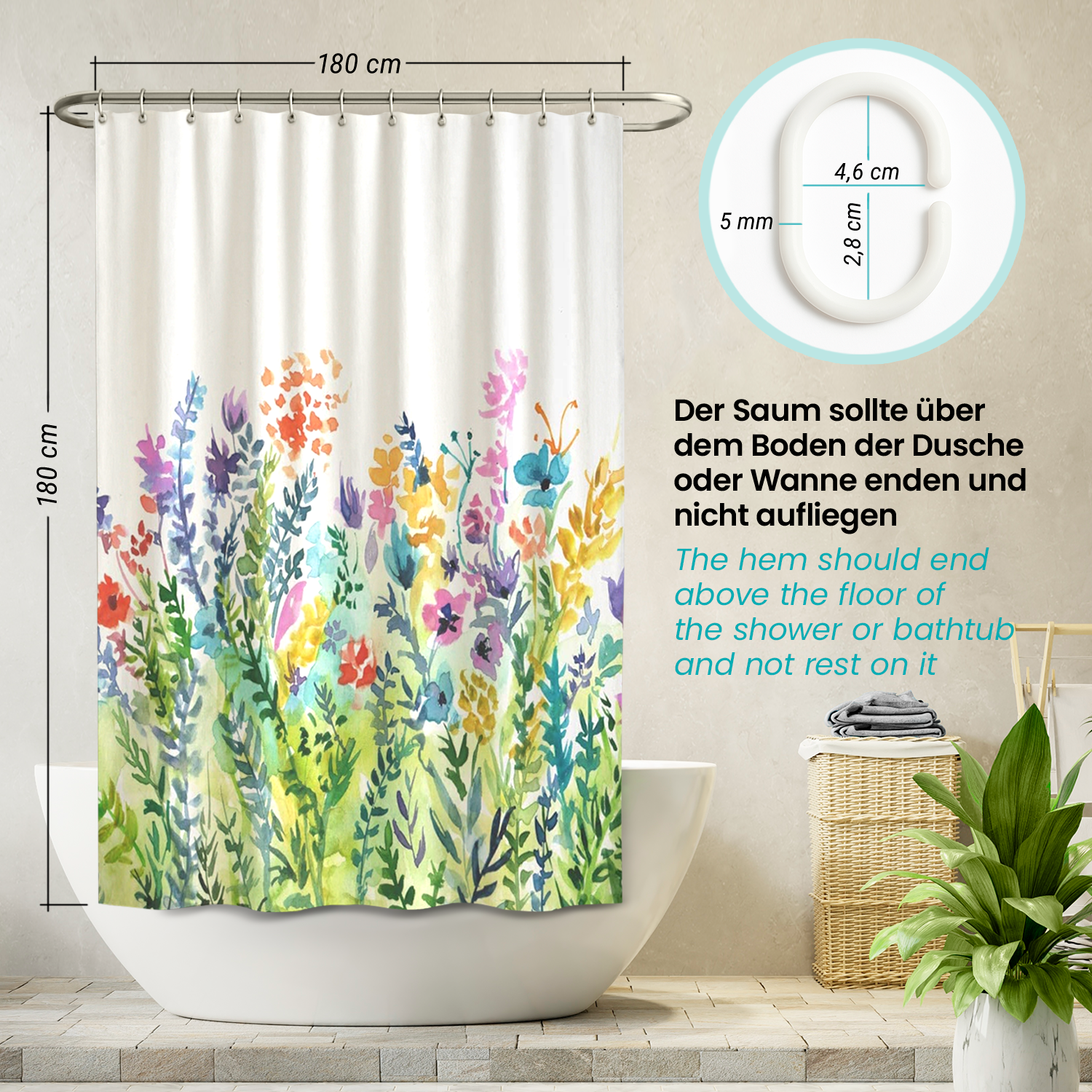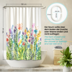 ✔ PERFEKT FÜR JEDES BAD: Mit der Abmessung 180 x 200 cm (Breite x Länge/ Höhe) kannst du den Textil-Duschvorhang an jeder Dusche und Badewanne über Eck oder an einer langen Seite mit den 12 mitgelieferten Duschvorhang-Ringen befestigen.