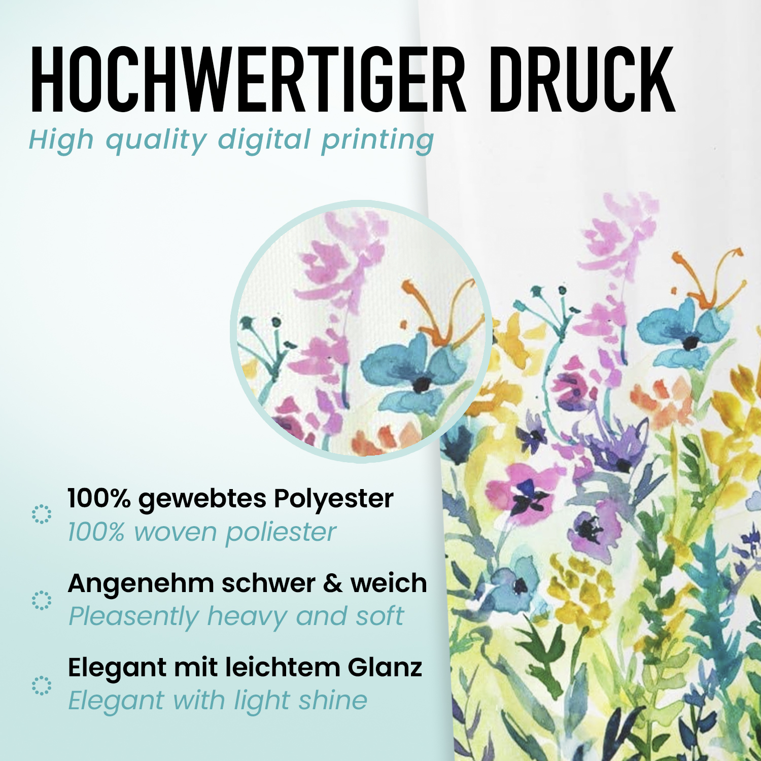 ♻️ Recycling-Duschvorhang Bunte Blume 180×180 cm
