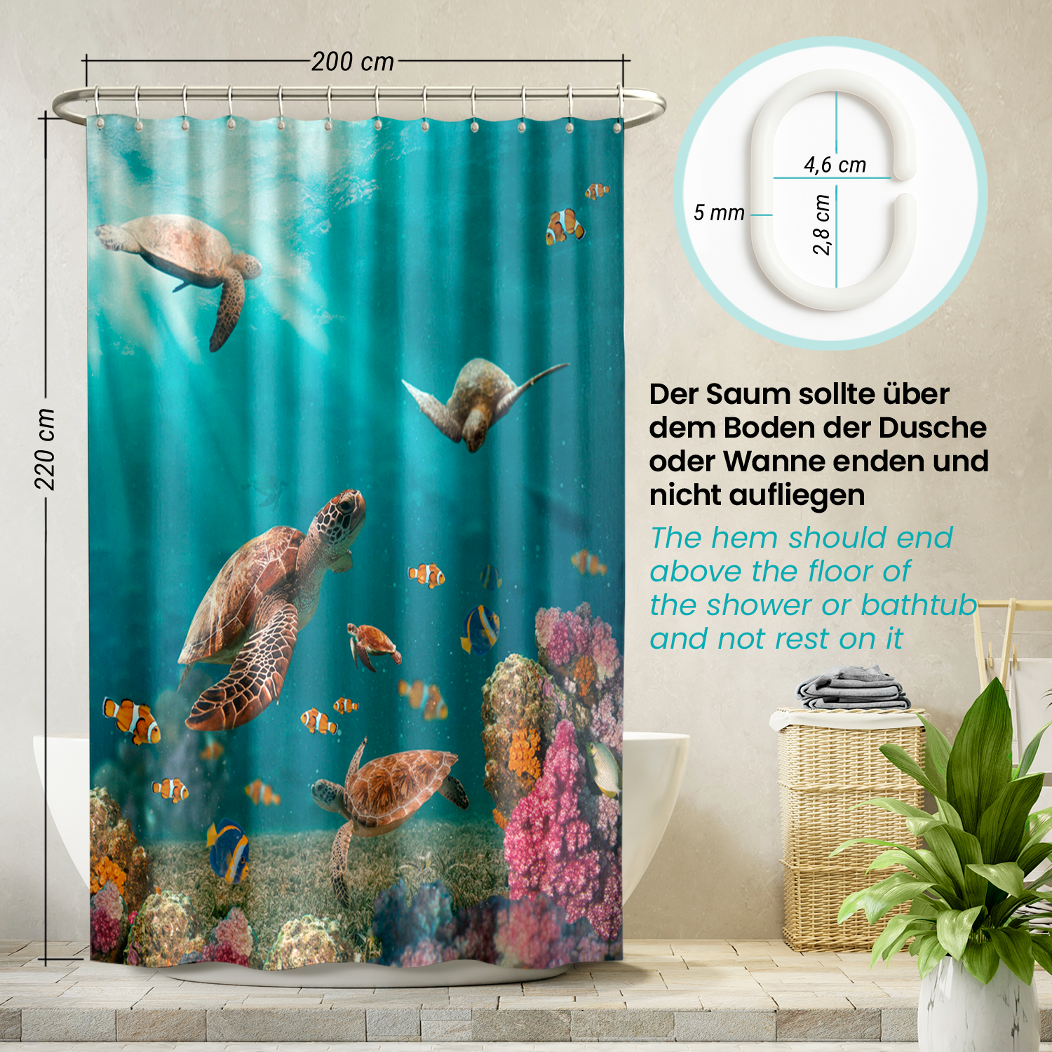 ♻️ Recycling-Duschvorhang Meeres Schildkröten 200×220 cm