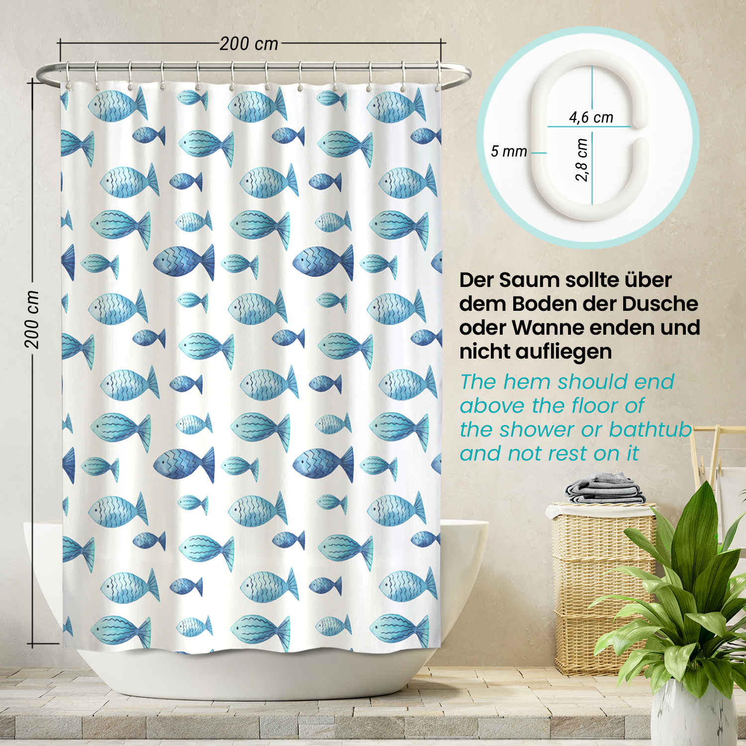 ♻️ Recycling-Duschvorhang Blaue Fische 200×200 cm