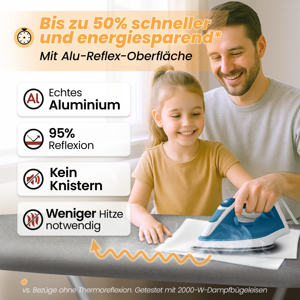 - ✅SCHNELLER BÜGELN OHNE KNISTERN: Spare Zeit, Strom & Nerven dank Gegenbügeleffekt (Hitze- und Dampf reflektierend). Mit der dampfdurchlässigen Aluminium-Beschichtung ist die Bügelunterlage auch noch 100% dampfbügelgeeignet.