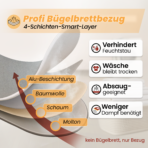 - ✅ BESSERE BÜGELERGEBNISSE dank Wärme- und Dampfspeicher aus doppelter Komfortpolsterung mit weichem Schaum und dickem Molton. Der grau-weisse Bügelbezug unterstützt optimal beim knitter- und faltenfreien Bügeln.