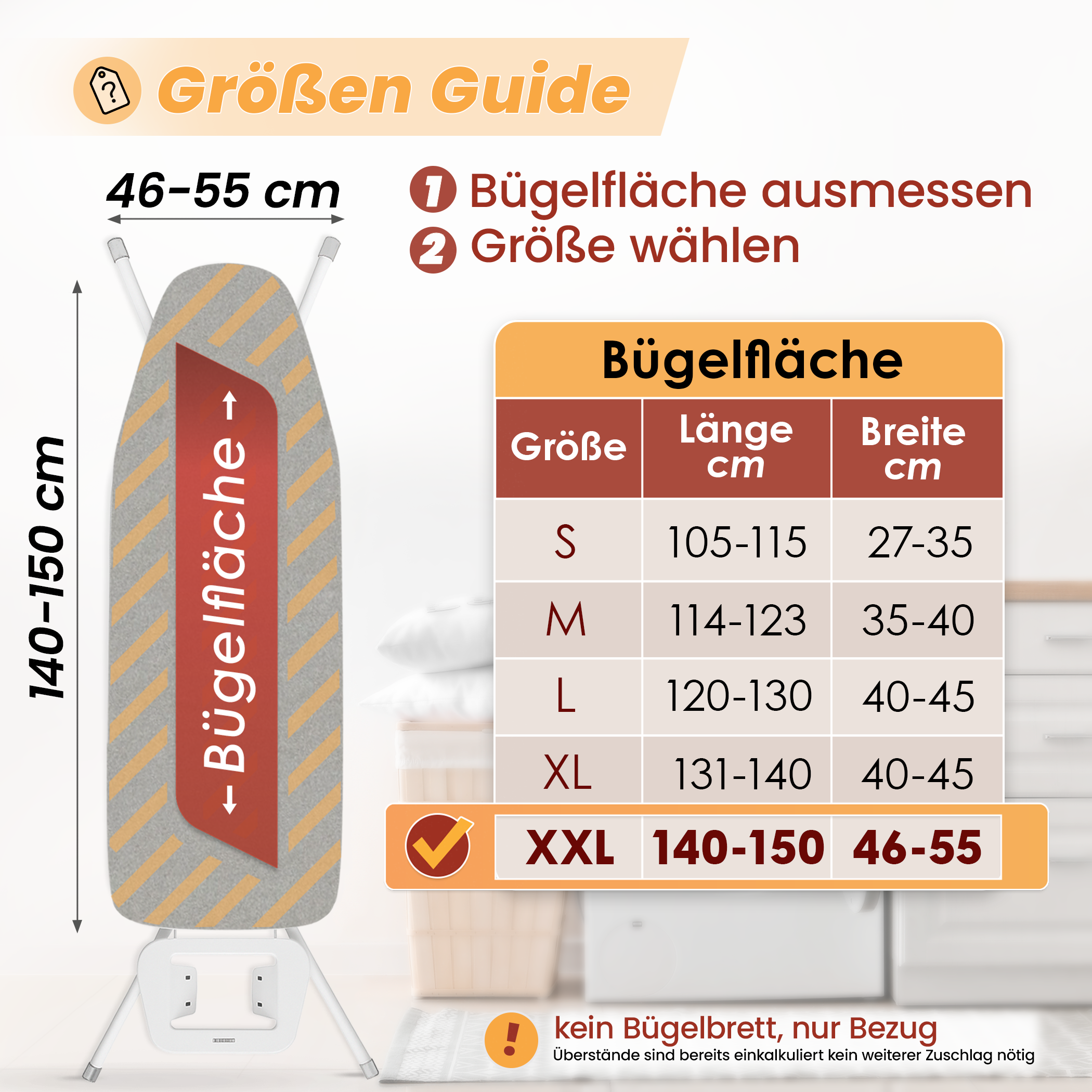 - ✅ FESTE MONTAGE : Der Bügelüberzug sitzt dank Kordelzug und der 5 verfügbaren Bügelbrett-bezug Größen fest auf allen Bügeltischen.